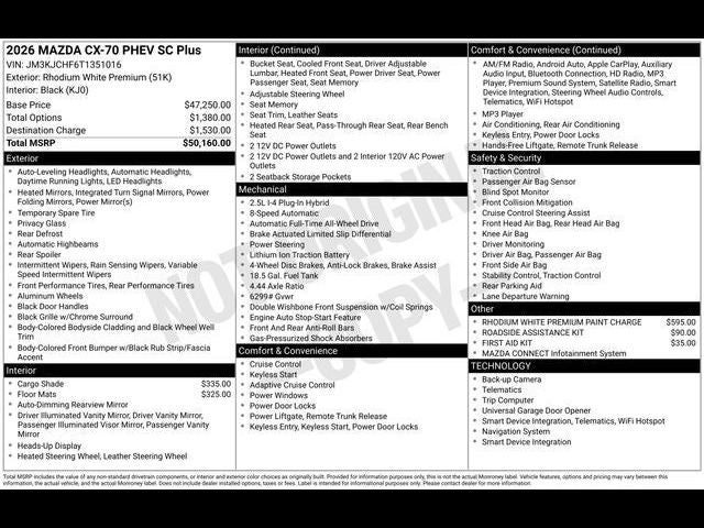 2026 Mazda CX-70 Plug-In Hybrid SC Plus AWD