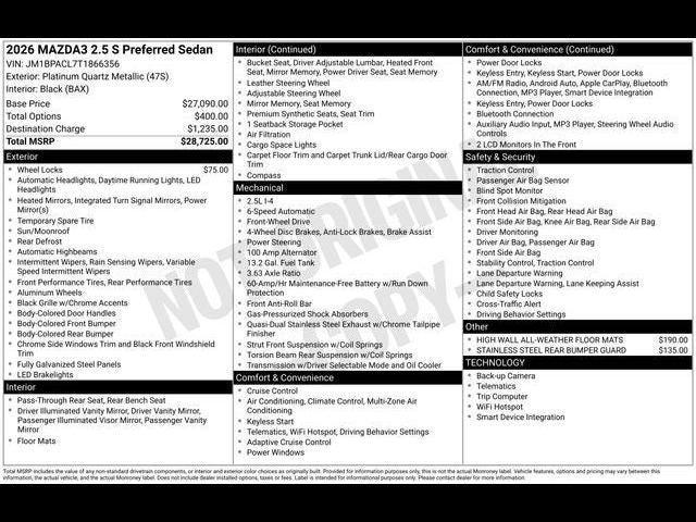 2026 Mazda3 Sedan 2.5 S Preferred