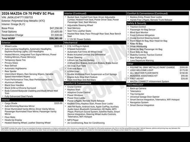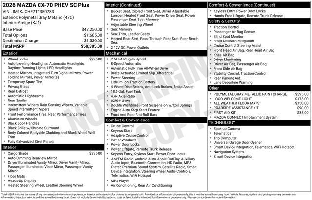 2026 Mazda CX-70 Plug-In Hybrid SC Plus AWD