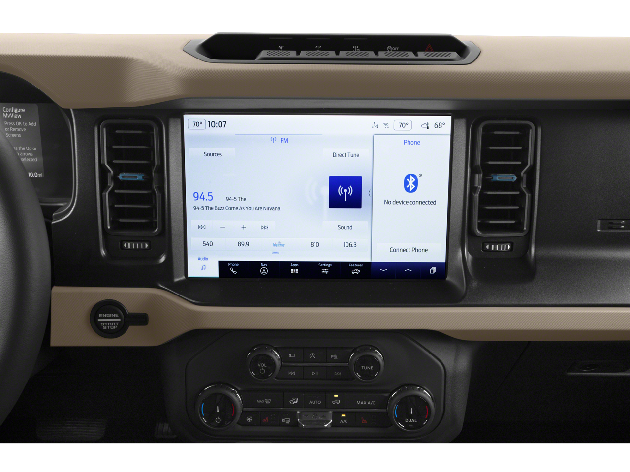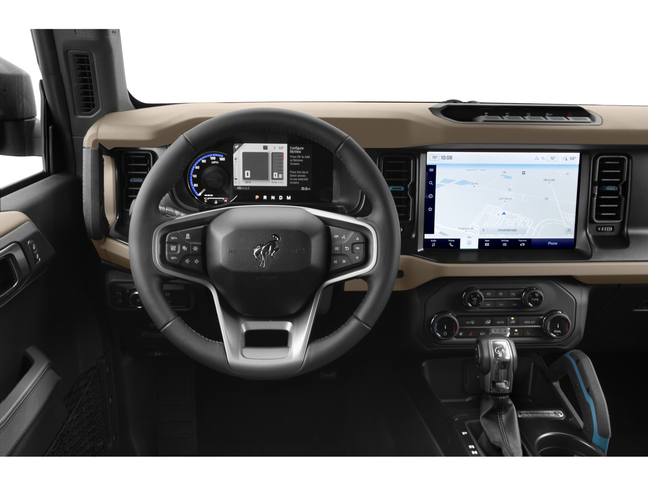 EQUIPMENT GROUP 354A LUX PACKAGE 2 Smart Charging USB Ports In Dashboard, 1 A and 1 C, 12 LCD Capacitive Touchscreen w/Swipe Capability, Evasive Steering Assist, Heated Steering Wheel, Adaptive Cruise Control, Additional Sound Deadening, Information on Demand Panel, Wireless Charging Pad, Radio: B&O Sound System by Bang & Olufsen, 10 speakers including subwoofer, Front Parking Sensors, 360-Degree Camera, Universal Garage Door Opener, Sideview Mirrors, LED approach lamps and LED spotlight, Connected Built-In Navigation, 3 years of service, pinch-to-zoom capability, live traffic, predictive destinations and route guidance, Navigation service requires SYNC4 and FordPass Connect, complimentary connect service and the FordPass app (see FordPass Terms for details), Customer receives a, MEDIUM SANDSTONE W/BLACK, HEATED LEATHER-TRIMMED/VINYL BUCKET SEATS 10-way power driver seat, 8-way front passenger seat and second row armrest w/2 beverage holders, FRONT & REAR FLOOR LINERS W/O CARPET FLOOR MATS Custom accessory, pre-installed, Deletes standard carpet front and rear floor mats, TRANSMISSION: 10-SPEED AUTOMATIC trail control, trail turn assist and trail one-pedal driving (STD).