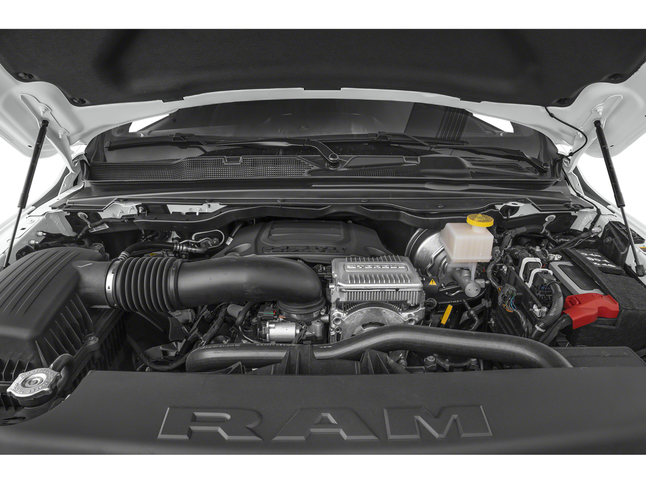 ENGINE: 5.7L V8 HEMI MDS VVT ETORQUE Active Noise Control System, Heavy Duty Engine Cooling, Passive Tuned Mass Damper, GVWR: 7,100 lbs, Dual Rear Exhaust w/Bright Tips, HEMI Badge, 23 Gallon Fuel Tank, 18 Aluminum Spare Wheel, BLACK, LEATHER TRIMMED BUCKET SEATS Bucket Seats, Full Length Upgraded Floor Console, TRANSMISSION: 8-SPEED AUTOMATIC (8HP75).